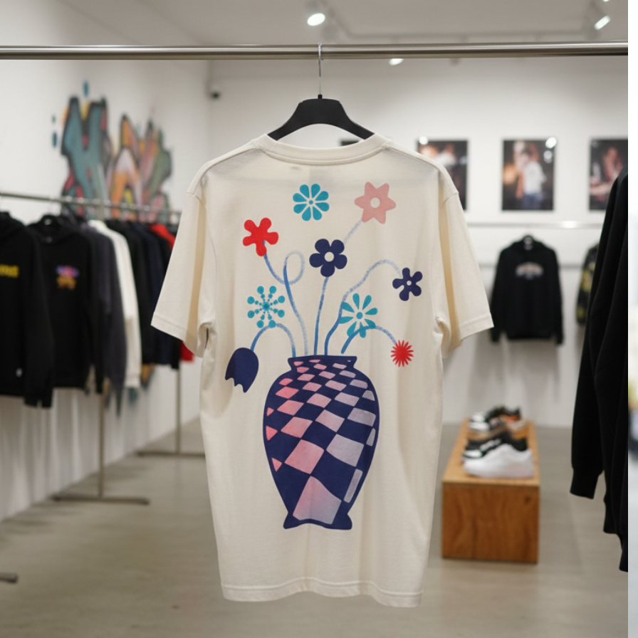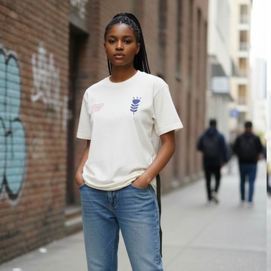 T-shirt 220g, coupe unisexe, avec impression artisanale faite main sur commande.