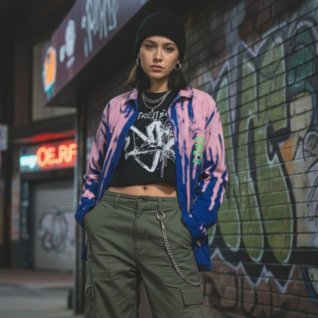 Les motifs en velours coloré apportent une touche artistique forte, pour un look affirmé et totalement unique.